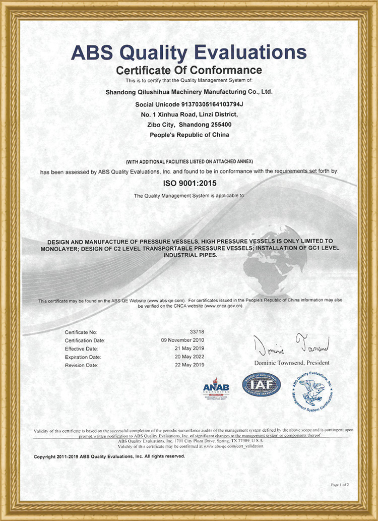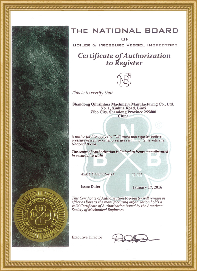 ASME制造設(shè)計許可證U.U2證書